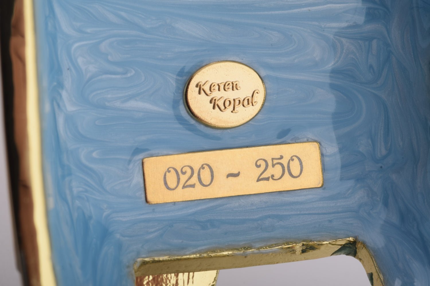 The frog trinket boxes embody the essence of art nouveau, a style that emerged in the late 19th century and celebrated organic forms, flowing lines, and a harmonious blend of nature and art. Keren Kopal's creations capture this aesthetic with their intricate enamel work, delicately painted details and the incorporation of Austrian and Swarovski crystals that mimic the iridescent quality of a frog's skin.