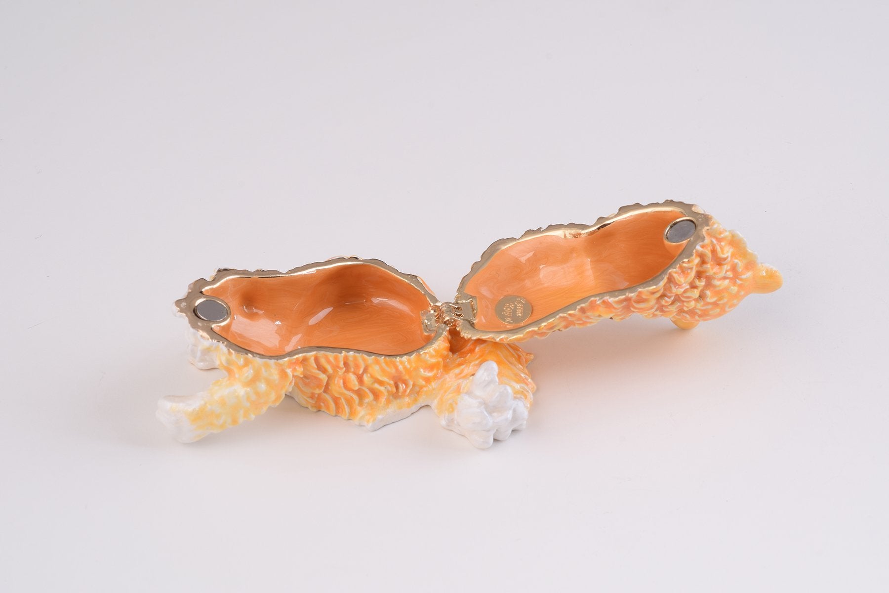 • The trinket box has a magnetic fastener to secure the closure.