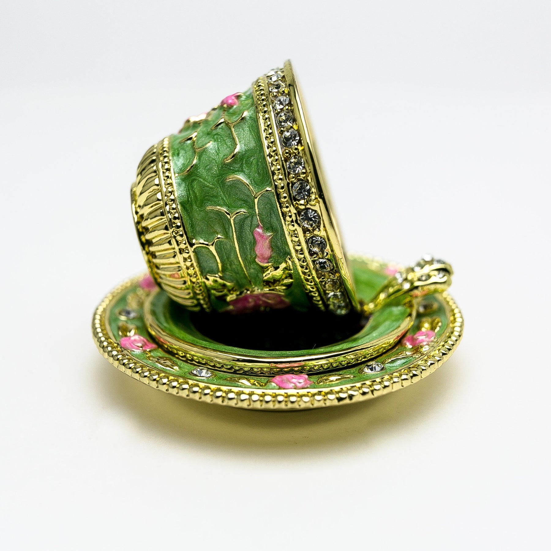 Enamel Painted Trinket Box Decorated with Austrian Crystals