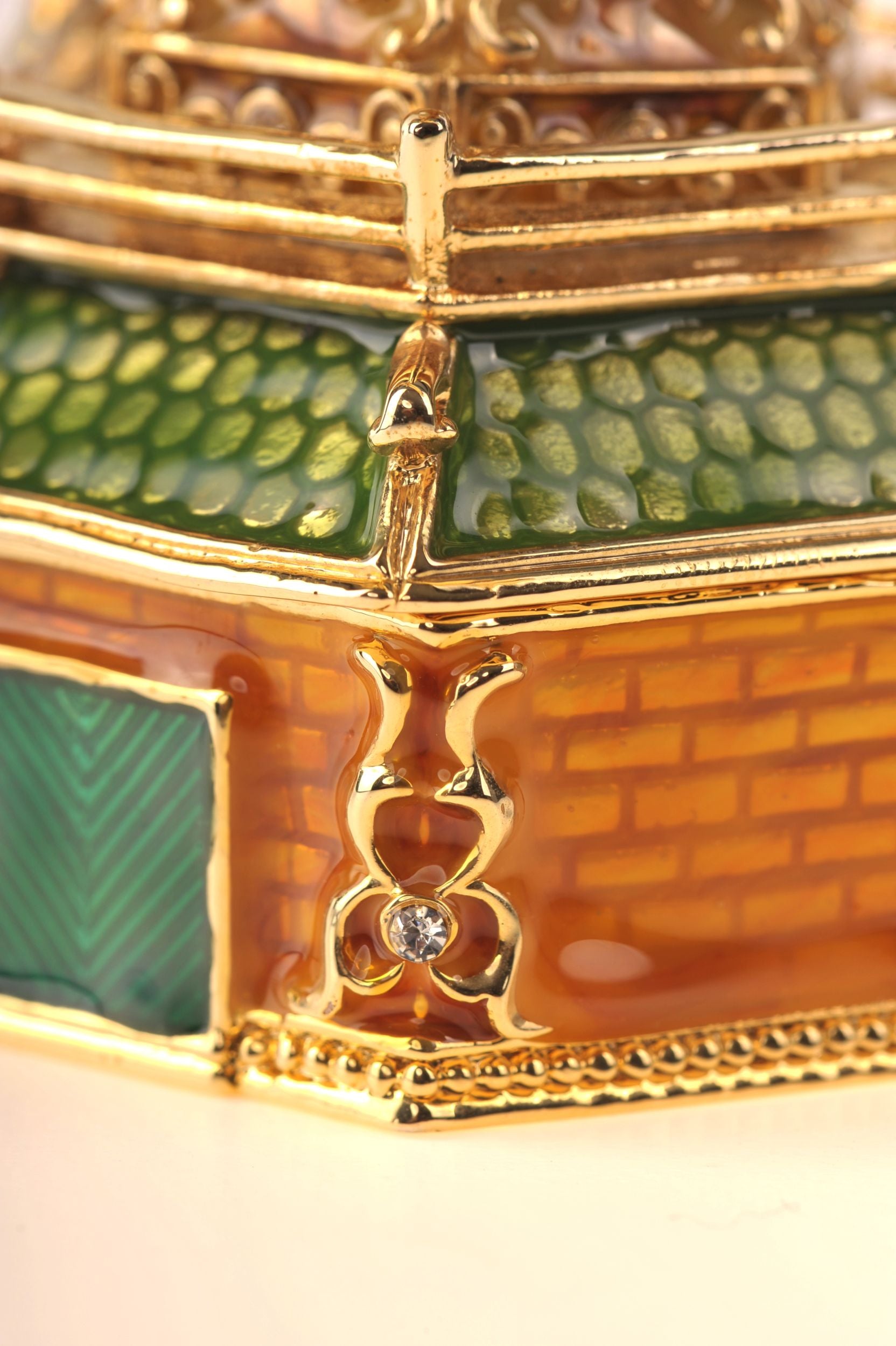 Enamel Painted Trinket Box Decorated with Austrian Crystals