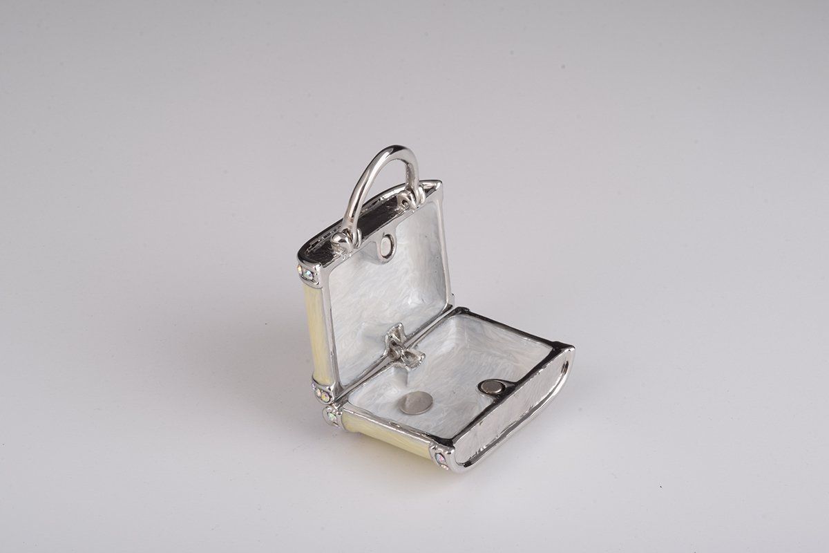 • The trinket box has a magnetic fastener to secure the closure.