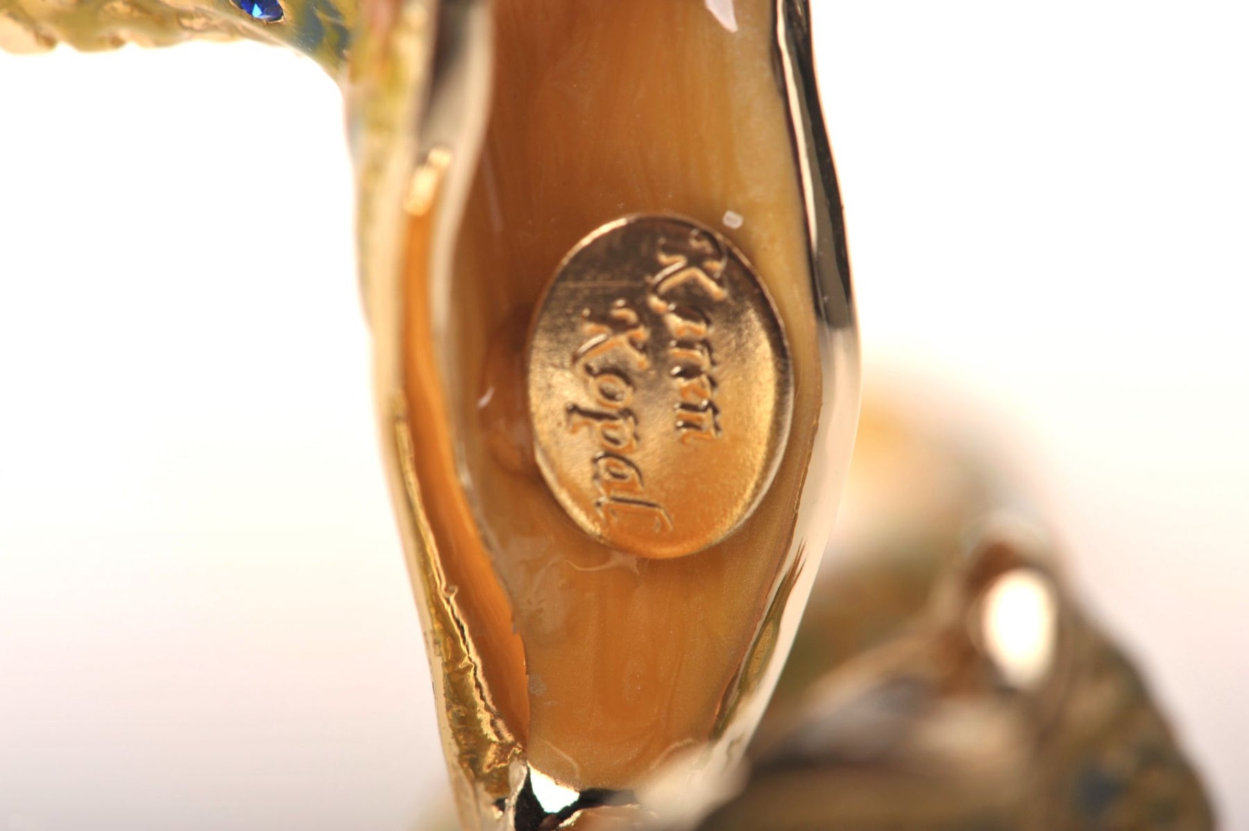 • Each item is painted by hand using a unique procedure that combines a distinctive enamel technique inlaid with Austrian and Swarovski crystals.