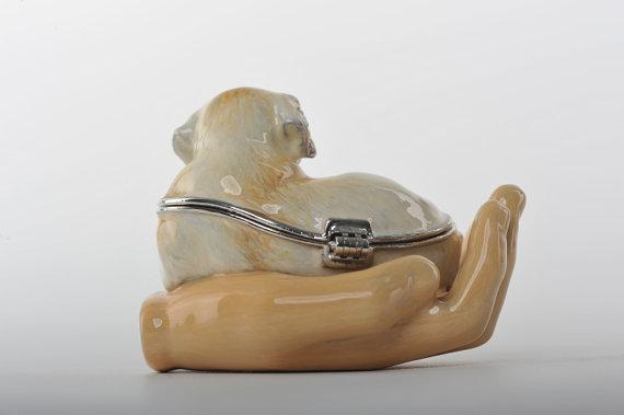 A charming handmade Zodiac Dog Laying on Hand Trinket Box.