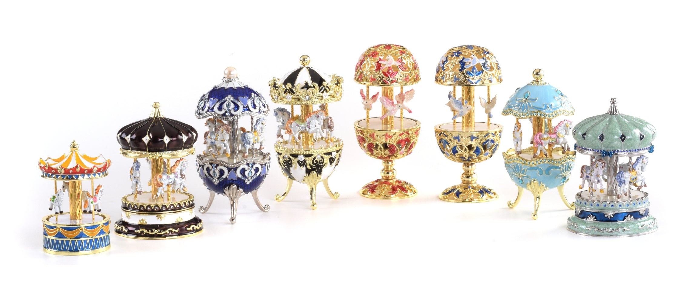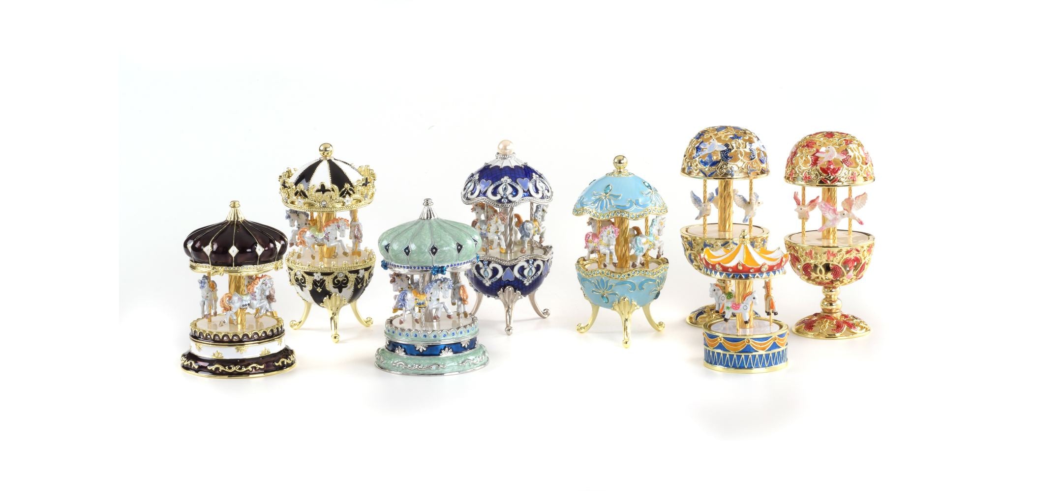 Les boîtes à bibelots et boîtes à musique, les carrousels à remonter, les œufs Fabergé et les bijoux de Keren Kopal se distinguent par leur beauté et leur savoir-faire uniques.
